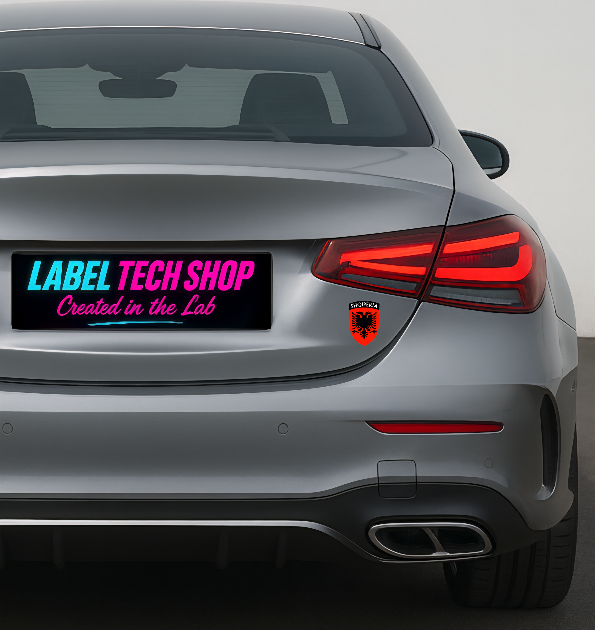 Ngjitëse me stemën dhe flamurin e Shqipërisë – ideale për makina, motoçikleta, helmetë, laptopë, telefona, valixhe dhe shumë të tjera.